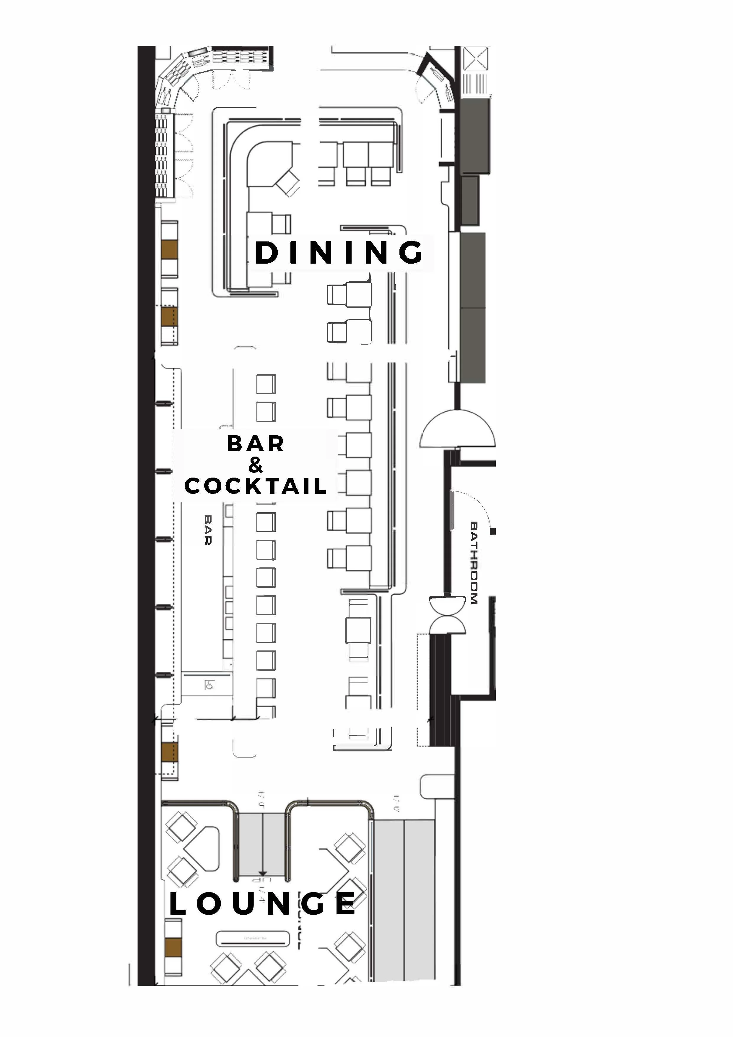Available for a semi-private events, this area can accommodate 24 people seated or 32 standing. It's the perfect spot for a either a seated meal or a standing social hour with hors d'oeuvres and can be combined with the bar area to accommodate up to 60 people.